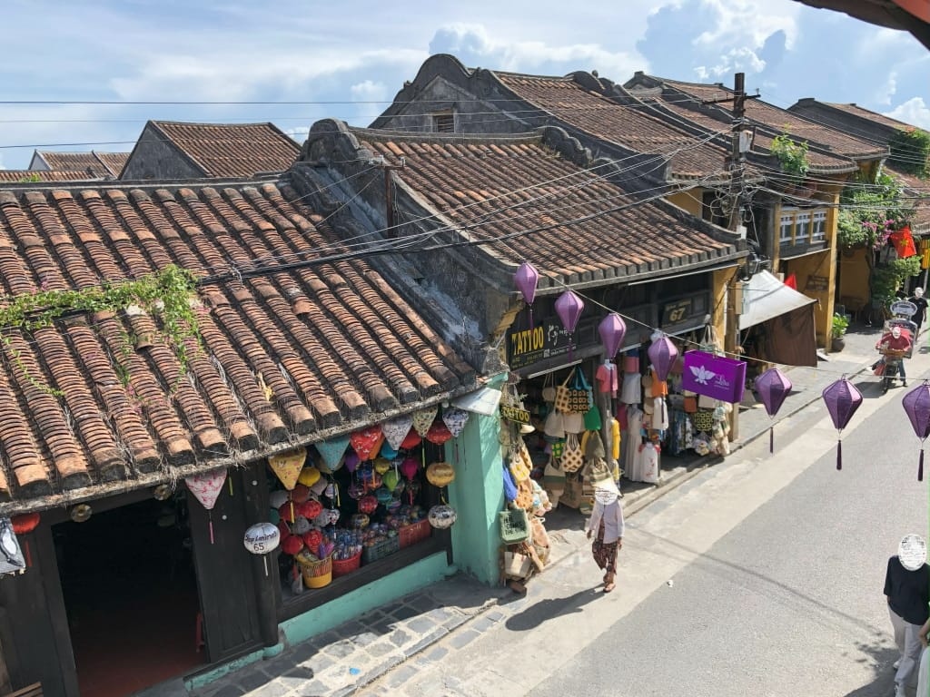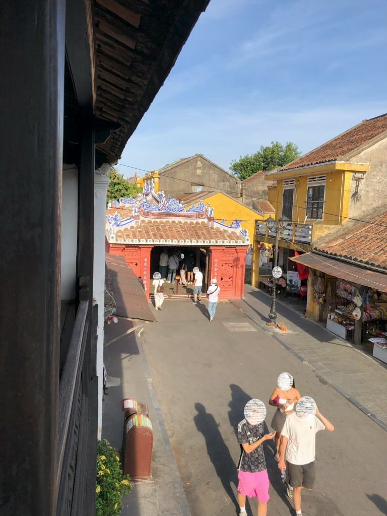 こちらは日本人街側の建物で、当時の日本形式が多少入っているようです。フーンフンの家の2階のテラスから日本橋の入口を上から眺められます