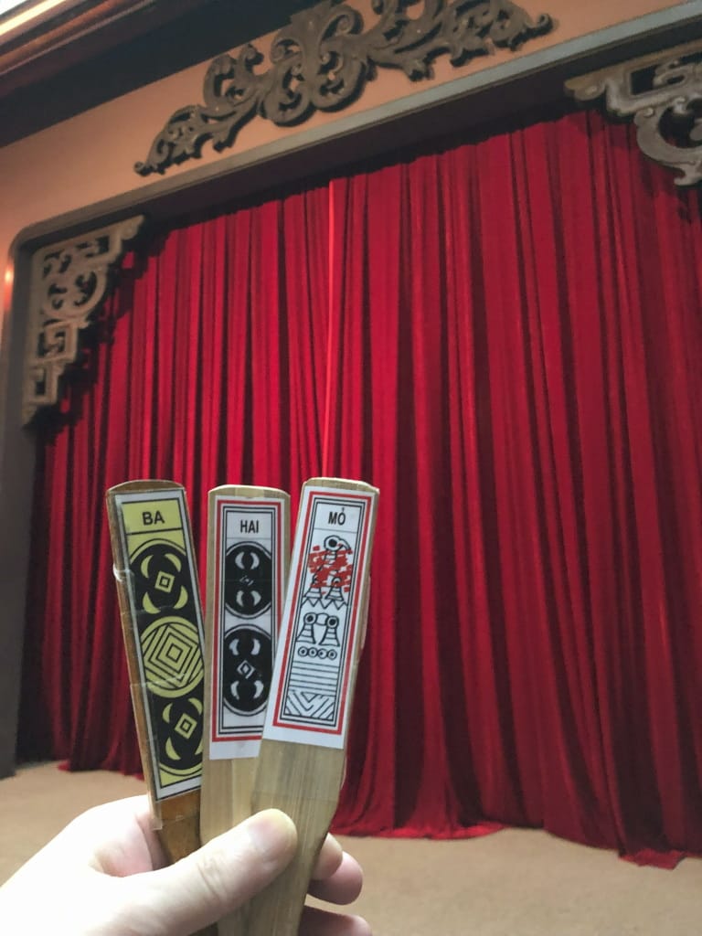 Hoi An Traditional Art Performance Houseはミュージカルのような劇です。入口で絵が張られた竹の棒を渡されます。その棒を使って最後にくじ引きがあります。座れるしエアコンがよく効いているので休憩をかねて訪問するとよいかもです。ものすごい狭いトイレもある模様。ちなみに、講演は3回しか無く、タイミングが丁度でよかったです