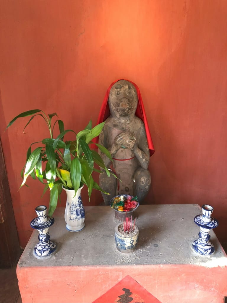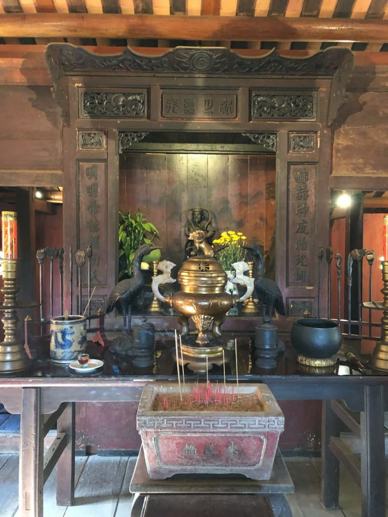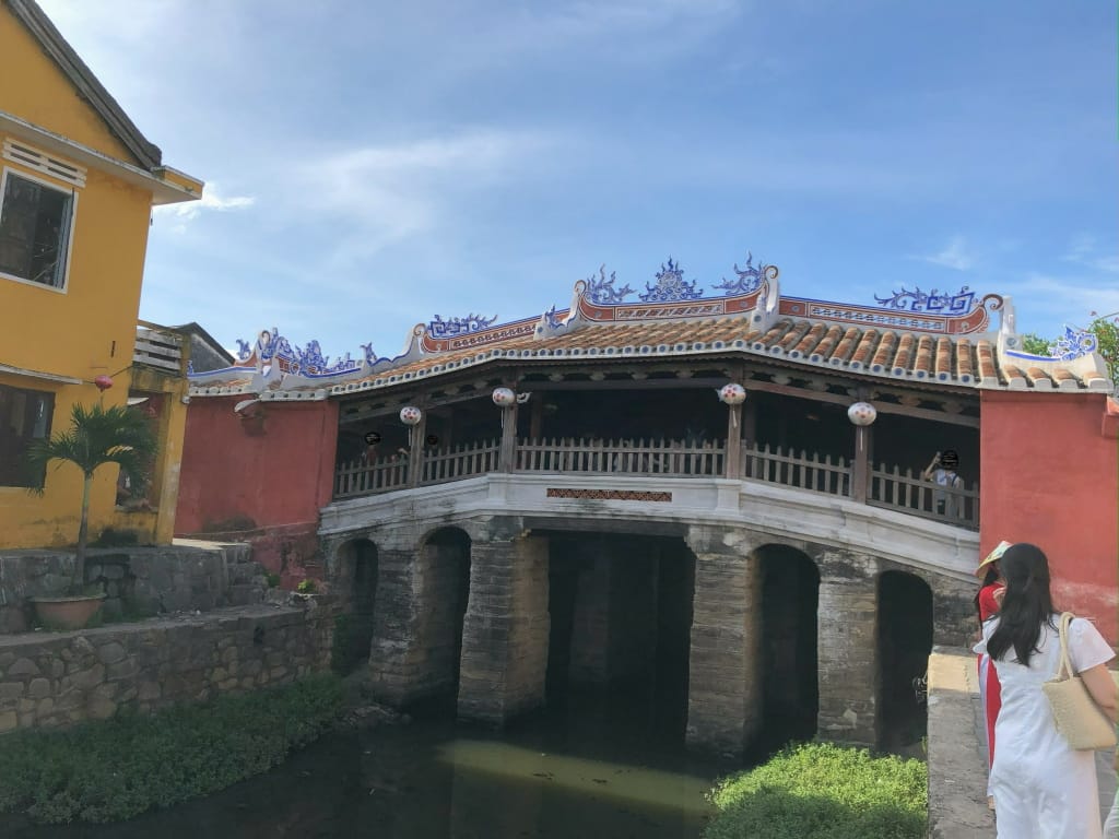 とても短い橋です。当時の日本エリアと中国エリアを結ぶ橋として当時の日本人が建設したのだとか。橋の出入口に木彫りの像があり、橋の中央に寺?があります。この橋は20Kドン紙幣に描かれています