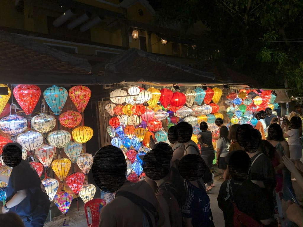 ホイアン旧市街で手漕ぎボートのチケット売り場を事前に確認していなくても良いとわかりました。乗り場の近くでたむろしていたら、灯篭売りに捕まるだろうから、手漕ぎボート売り場まで案内されます(ボートに乗りたそうな顔をしていればOK)。ホイアンを楽しむには1泊した方がいいですね