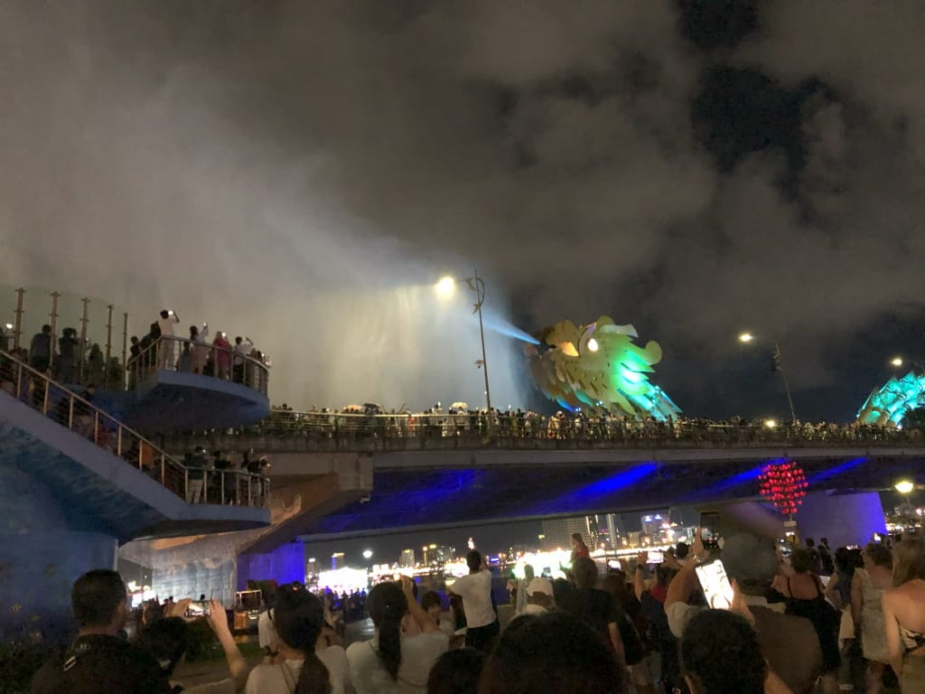 ドラゴンブリッジが近く歩いていける距離なので、ドラゴンブリッジの火と水のショーに興味があったら夕食をラオダイにすると便利と思う。自分たちは金曜日の夜に行って、歩いてドラゴンブリッジに向かいました(龍の頭が橋の向こう側じゃなくてよかった)